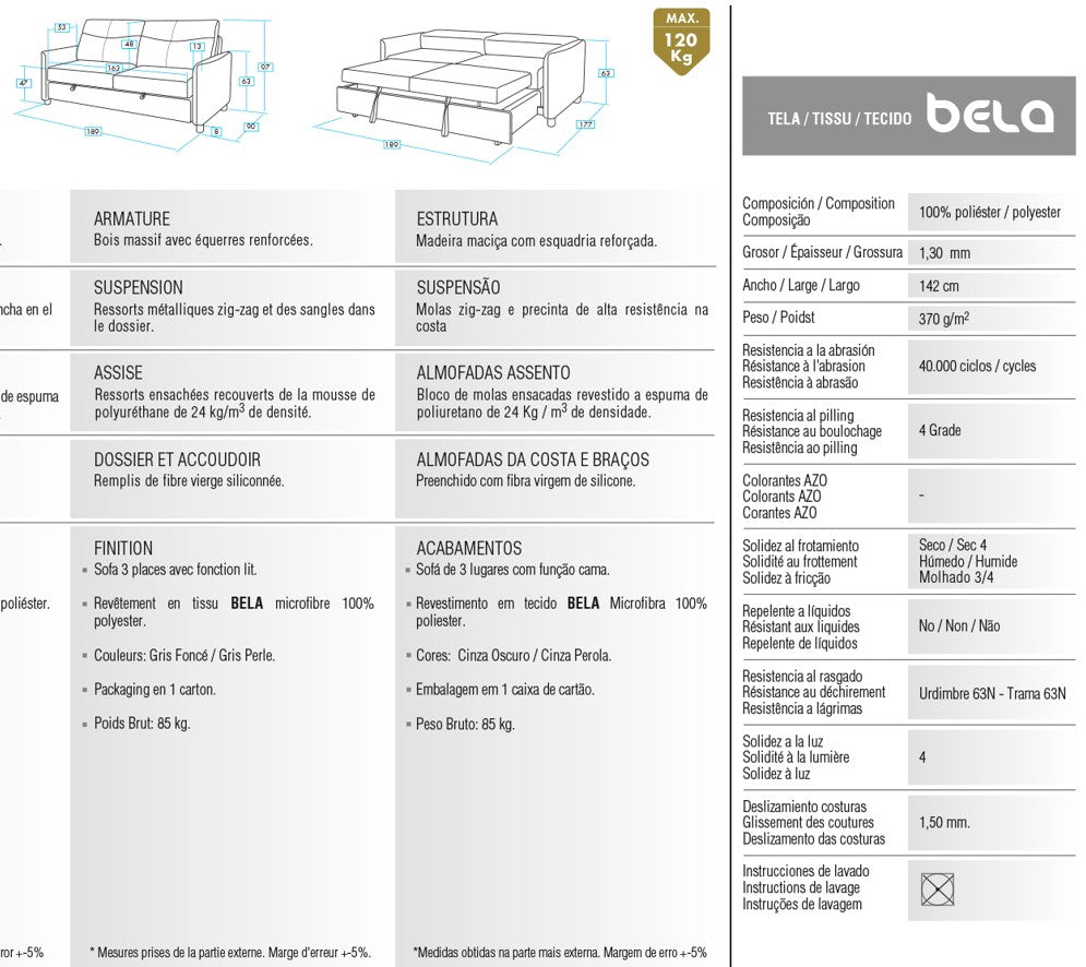 - Mécanisme : système convertible fluide et robuste, permettant une transformation rapide en couchage.