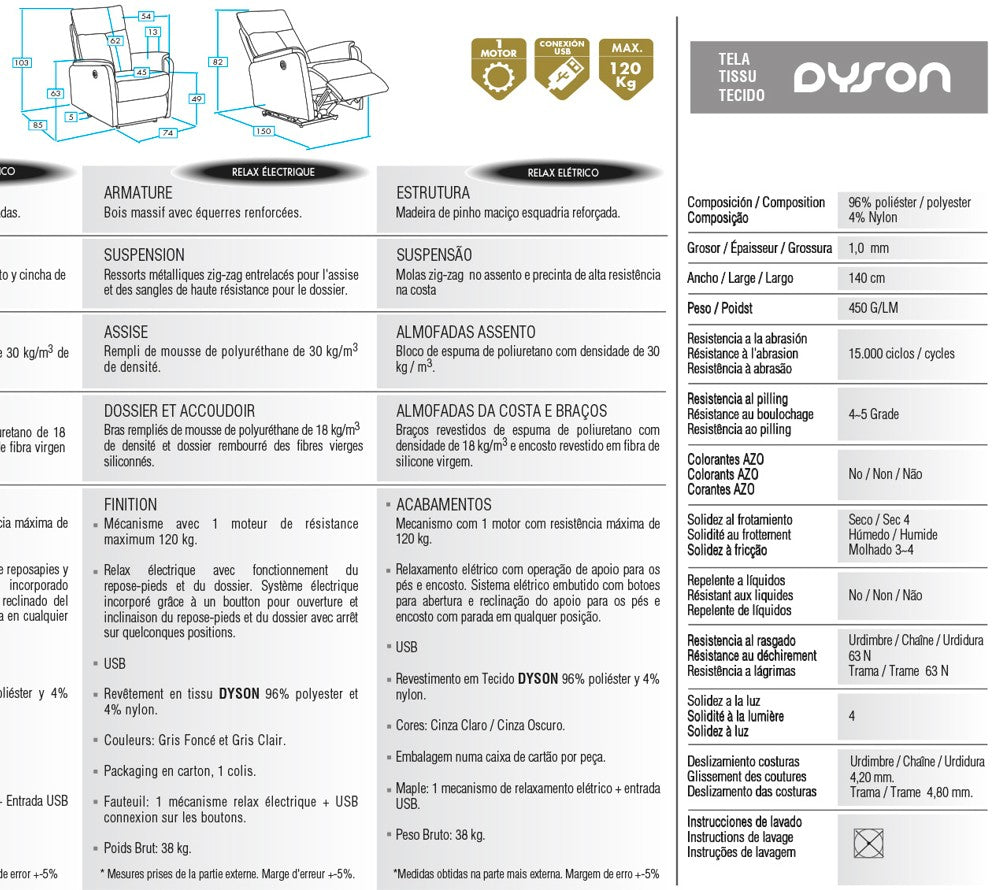 - Mécanisme : système relax électrique motorisé, permettant un ajustement fluide et personnalisé.