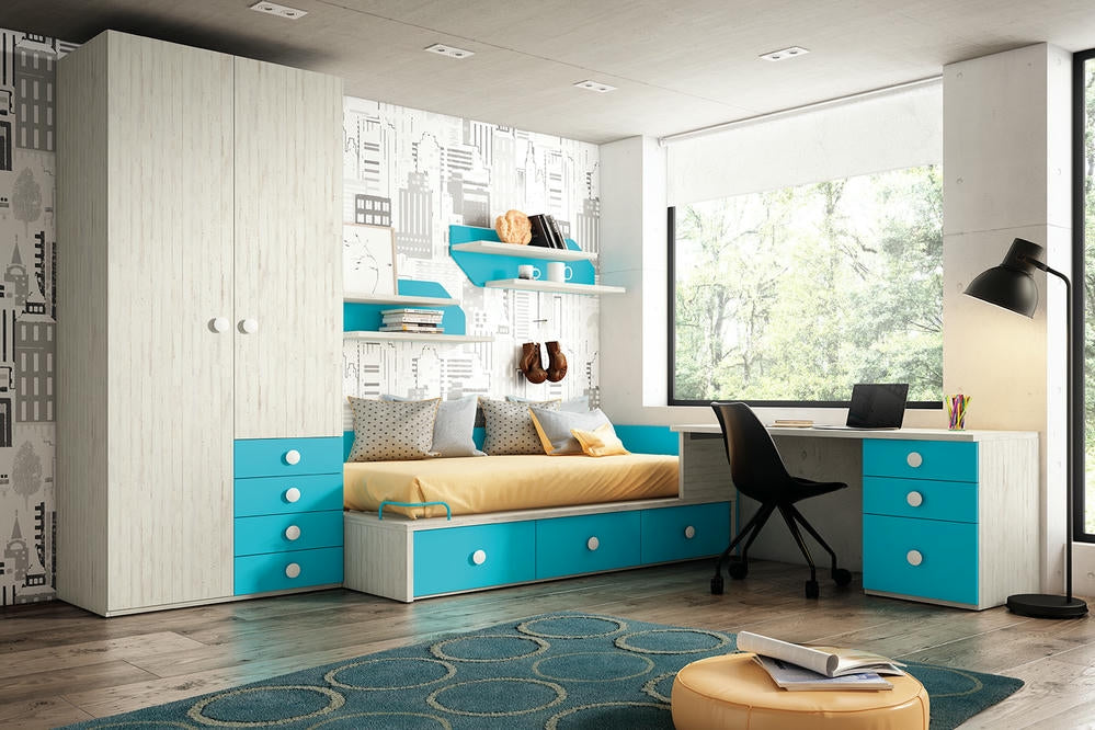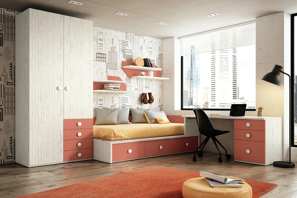 Chambre enfant et adolescent, Lit bureau composition 17