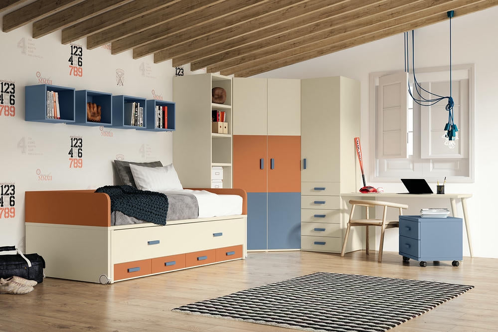 Chambre enfant et adolescent, Lit Gigogne avec bureau composition 37