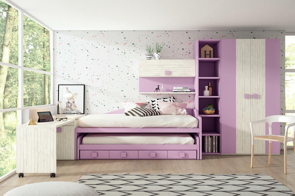 Chambre enfant et adolescent, Lit Gigogne + bureaucomposition 22