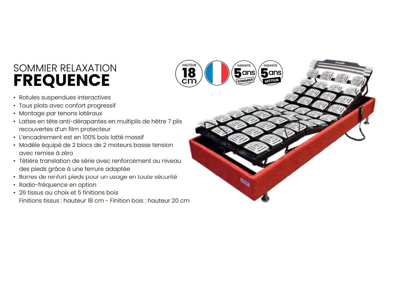 - 5 ans de garantie sur le sommier et les moteurs