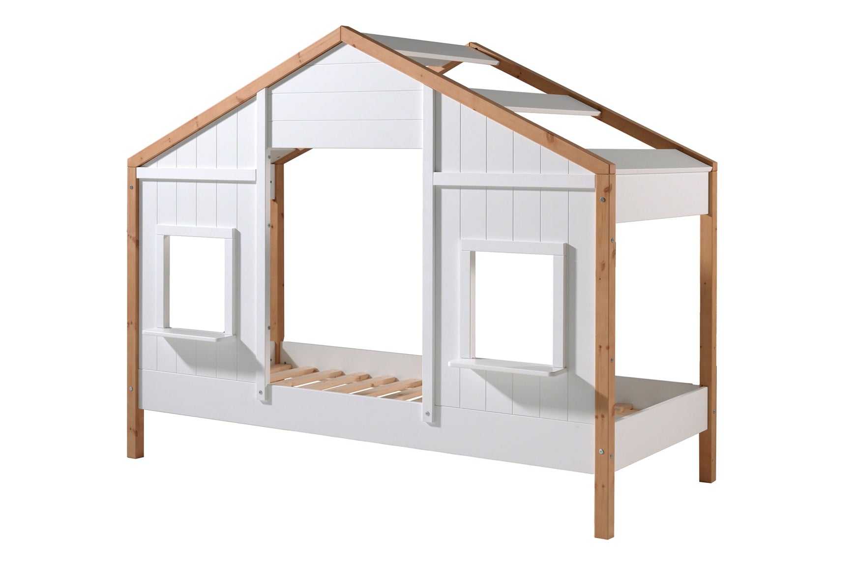 Avec sa construction en bois robuste et son design ludique, y compris des fenêtres et un toit, ce lit est parfait pour les enfants aventureux.