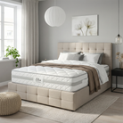Garnissage laine 300 gr/m² associé à 2 cm Ergo Hypersoft, offrant un accueil moelleux et une régulation thermique naturelle.