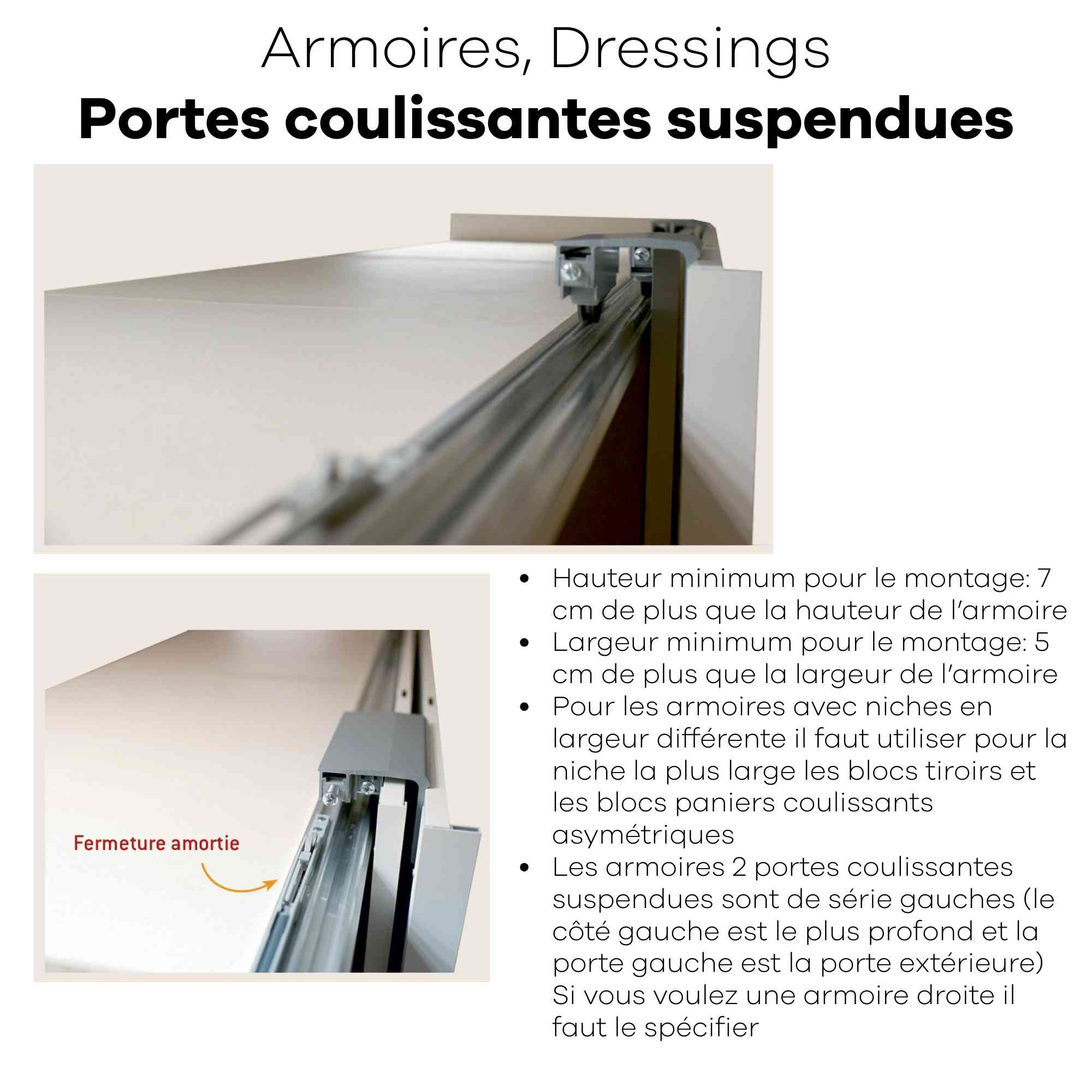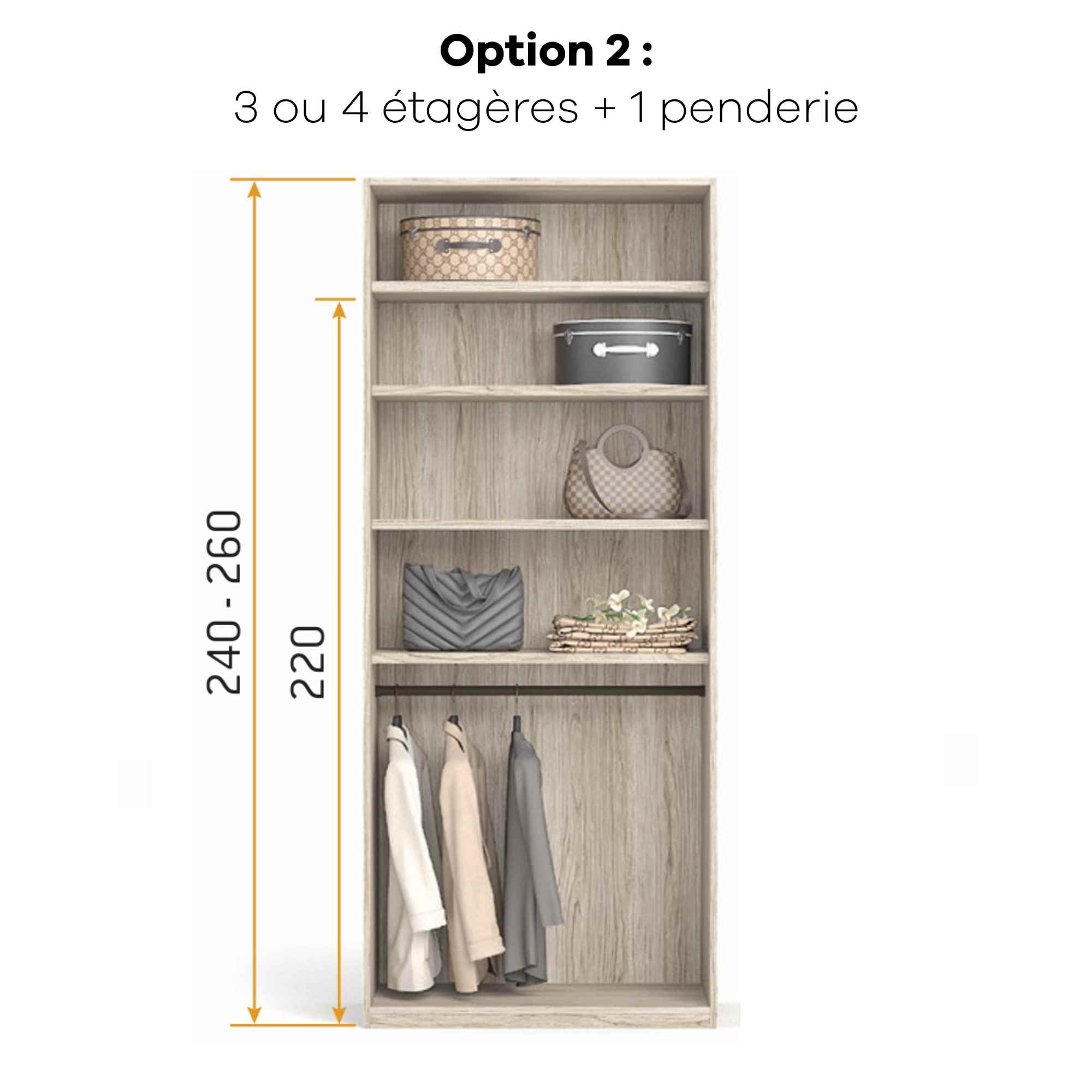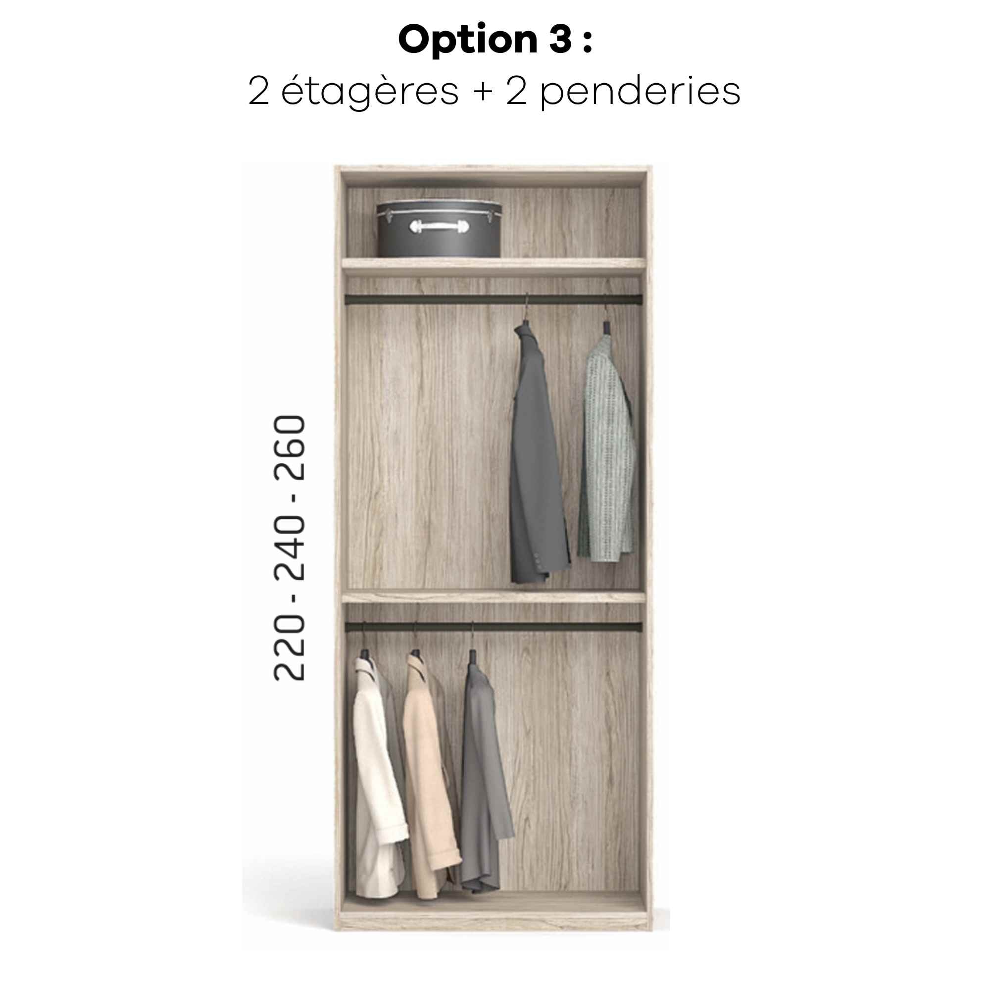 Armoire personnalisable LOLA - 3 portes coulissantes suspendues - Largeur de 206.20cm à 296.20cm - Hauteur 220cm - Profondeur 65.70cm - Inserts décoratifs verticaux