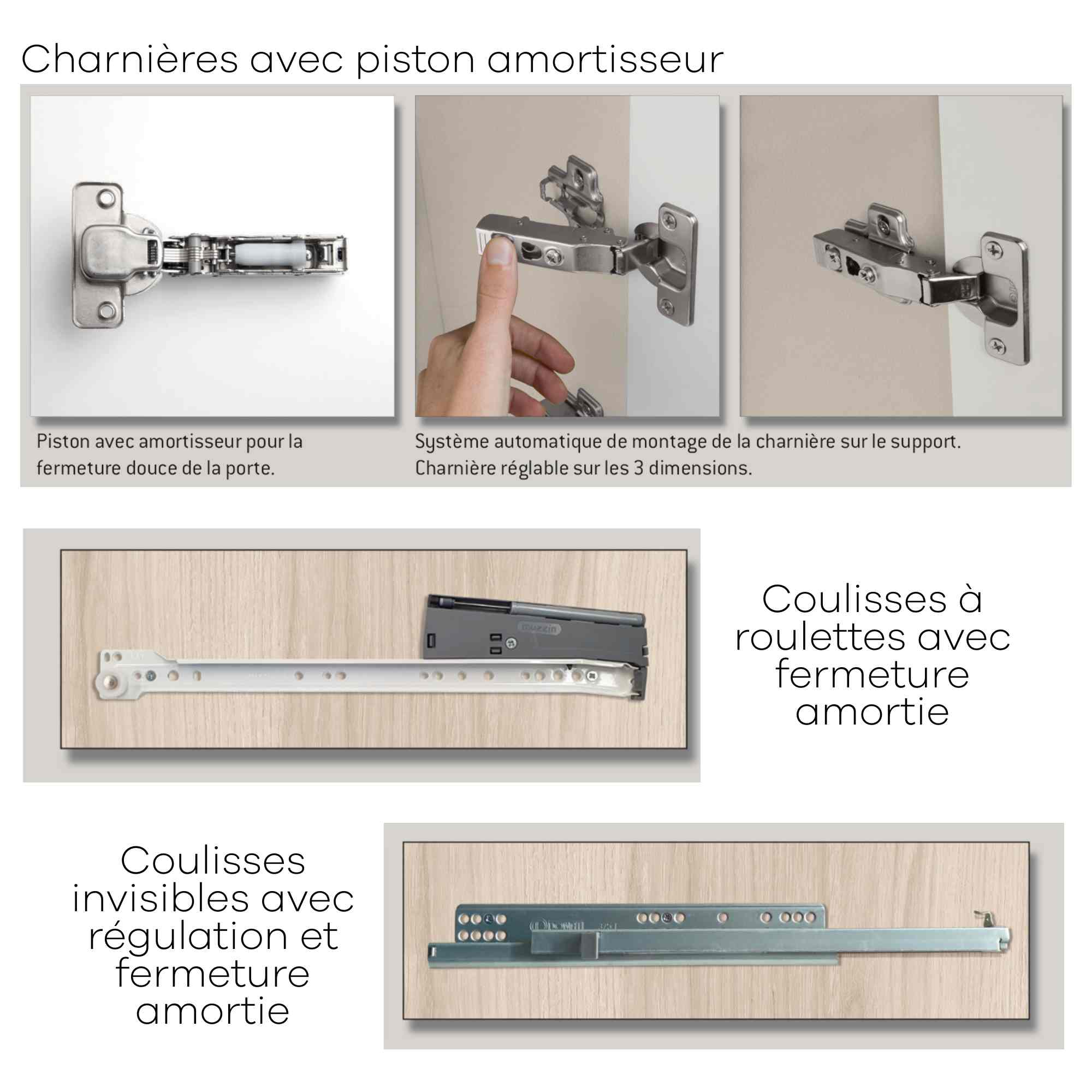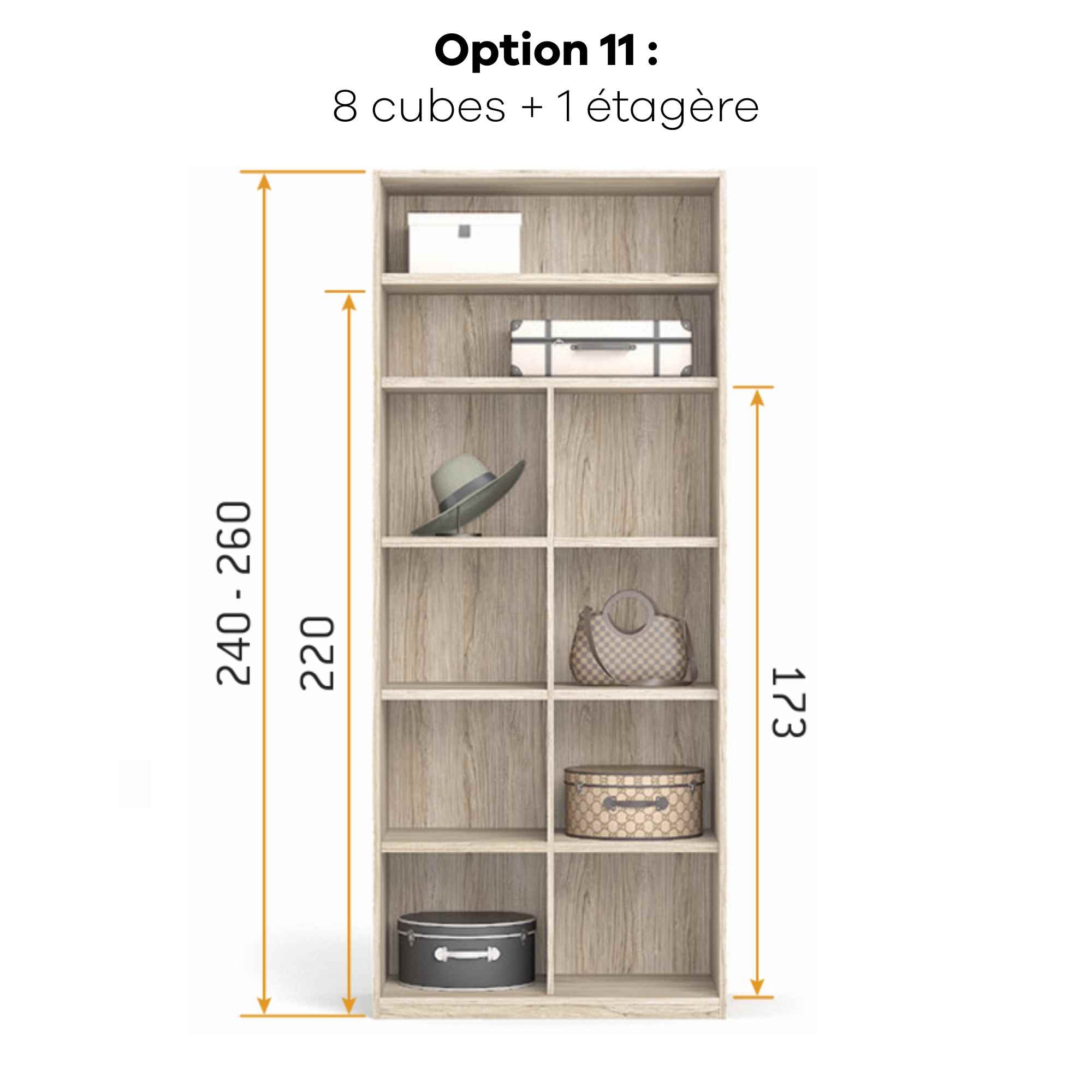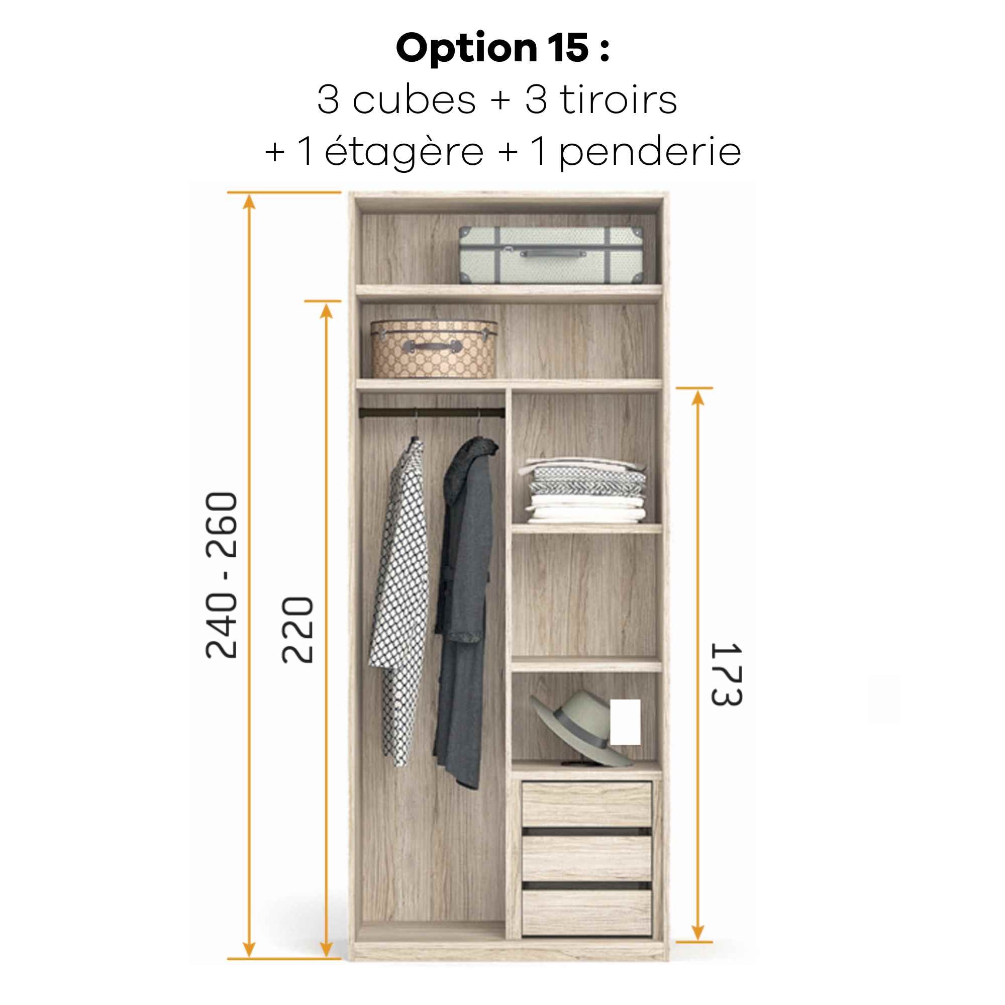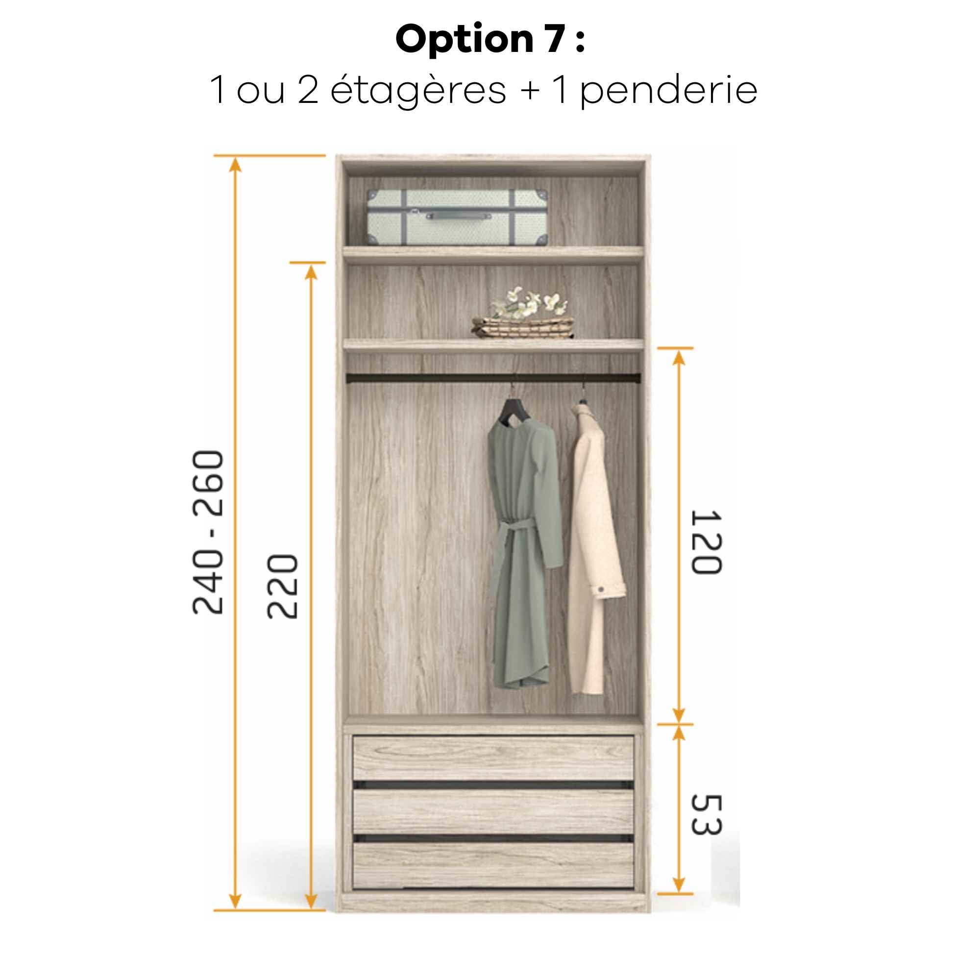 Armoire personnalisable LOLA - 3 portes coulissantes suspendues - Largeur de 206.20cm à 296.20cm - Hauteur 220cm - Profondeur 65.70cm - Inserts décoratifs verticaux