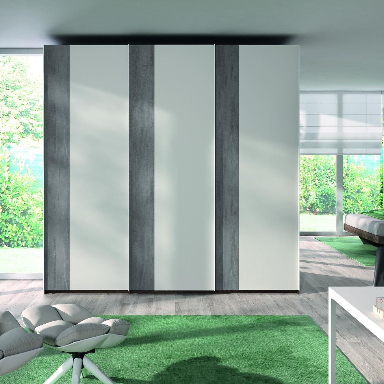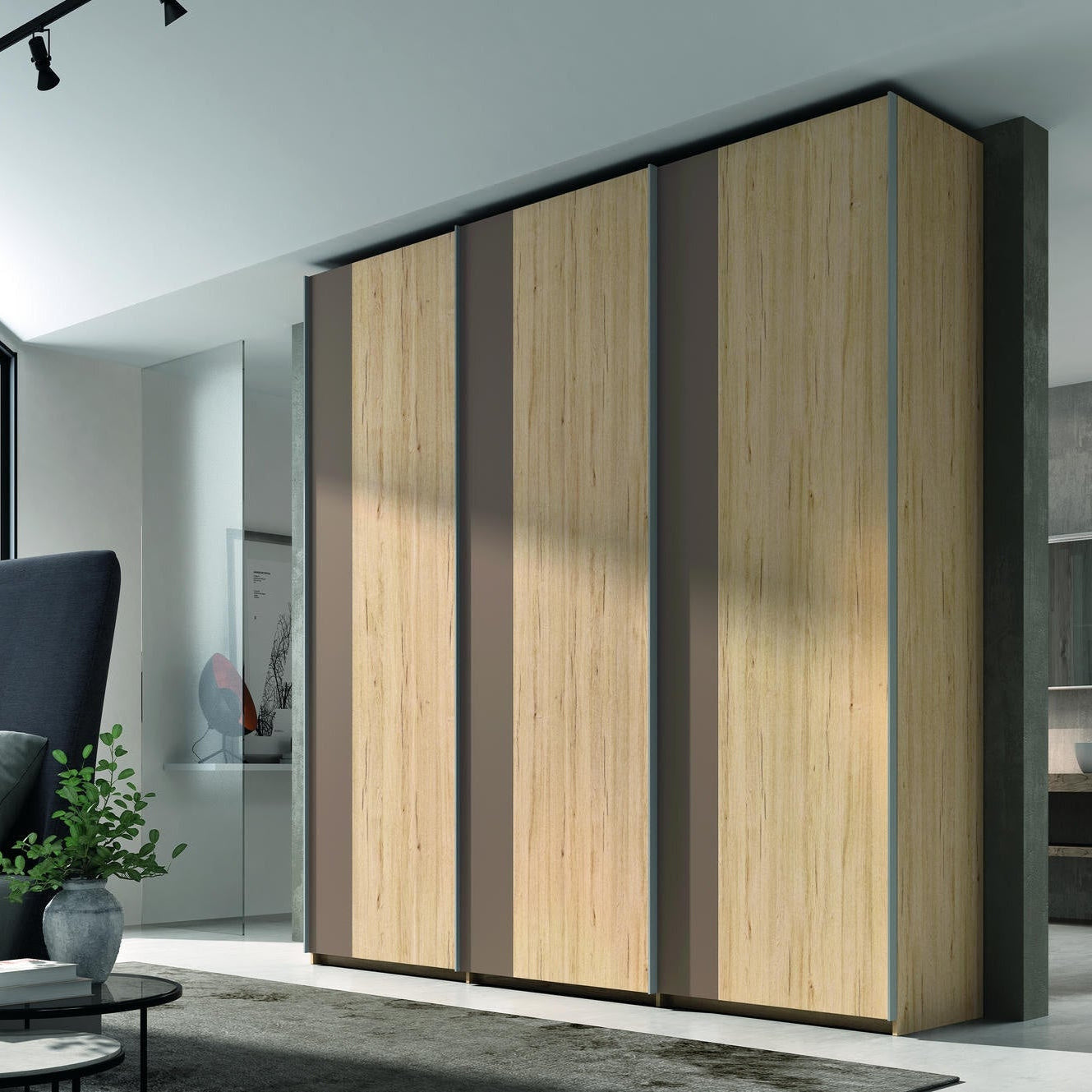 Armoire personnalisable LOLA - 3 portes coulissantes suspendues - Hauteur 220cm - Profondeur 65.70cm - Inserts déco verticaux