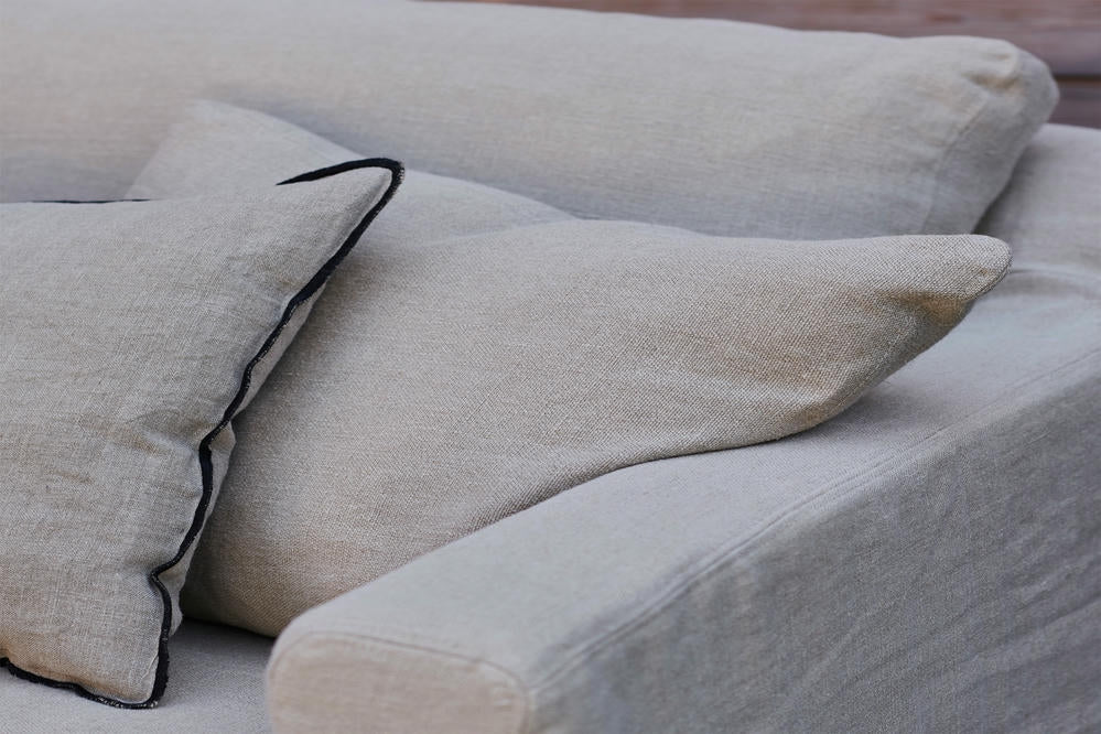 - Le revêtement est entièrement déhoussable et proposé en lin froissé, velours lisse ou côtelé, bouclette, coton/lin, avec de nombreux coloris disponibles. Ce modèle est recommandé en tissu léger pour conserver une ligne aérée et naturelle. Il est certifié NF et garanti 3 ans.