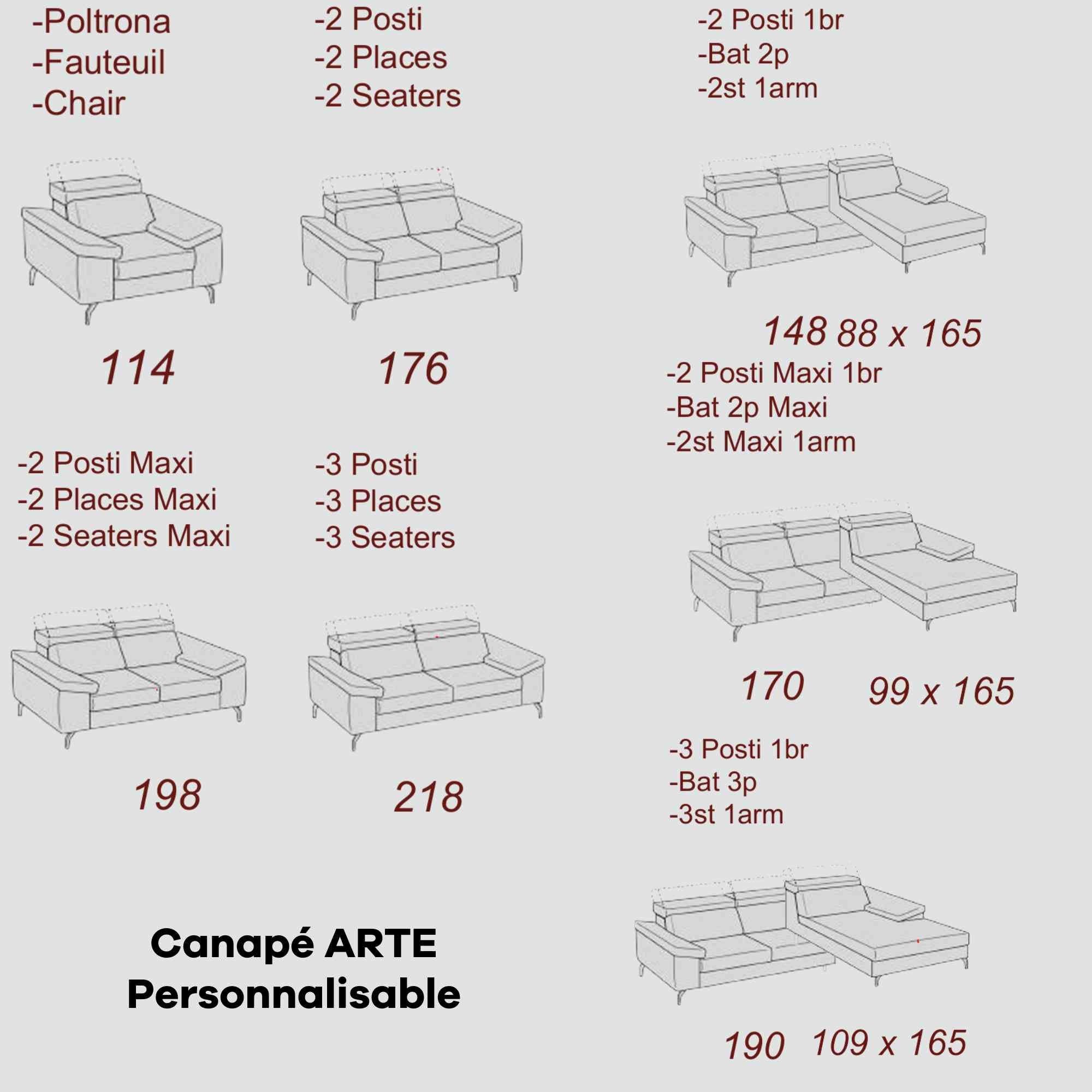 Canapé Italien ARTE : Configurez votre canapé selon vos besoins, Fixe, Relax, Angle, Méridienne, 1, 2, 3, 4 places, tissus.