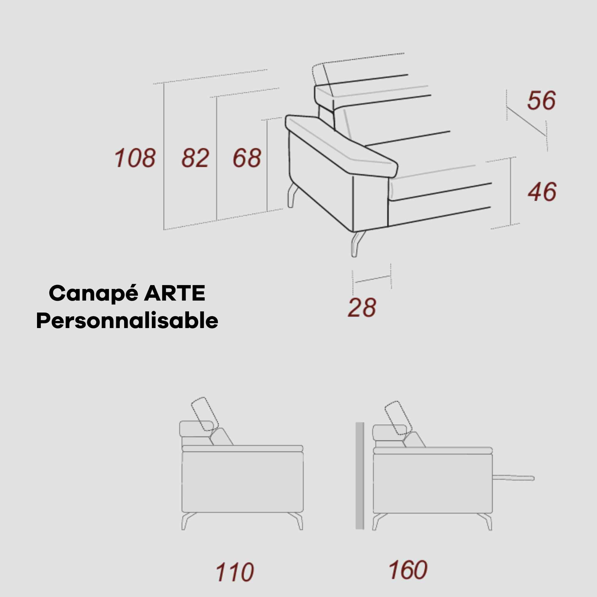 Canapé ARTE, Personnalisable, Fixe, Relax, Angle, Méridienne, 1, 2, 3, 4 places, Tissus