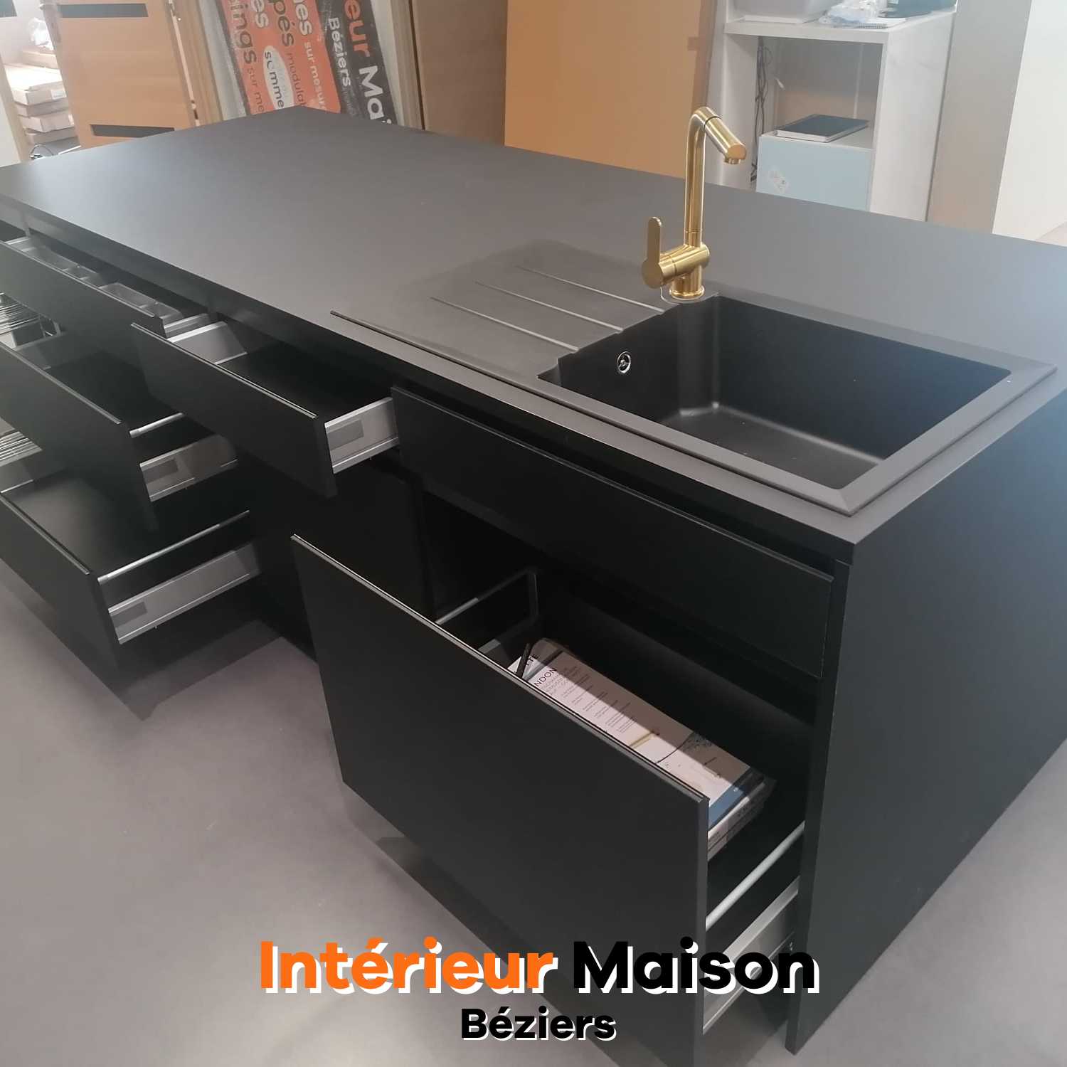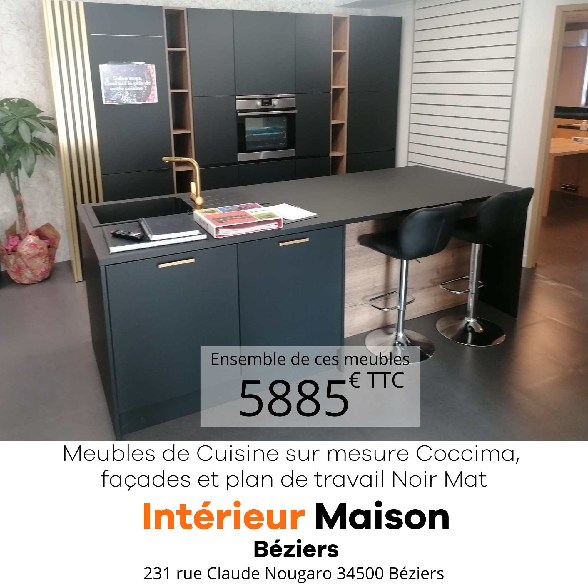 Exemple CUISINE Coccima, ilot central, full black, à 5885€ TTC