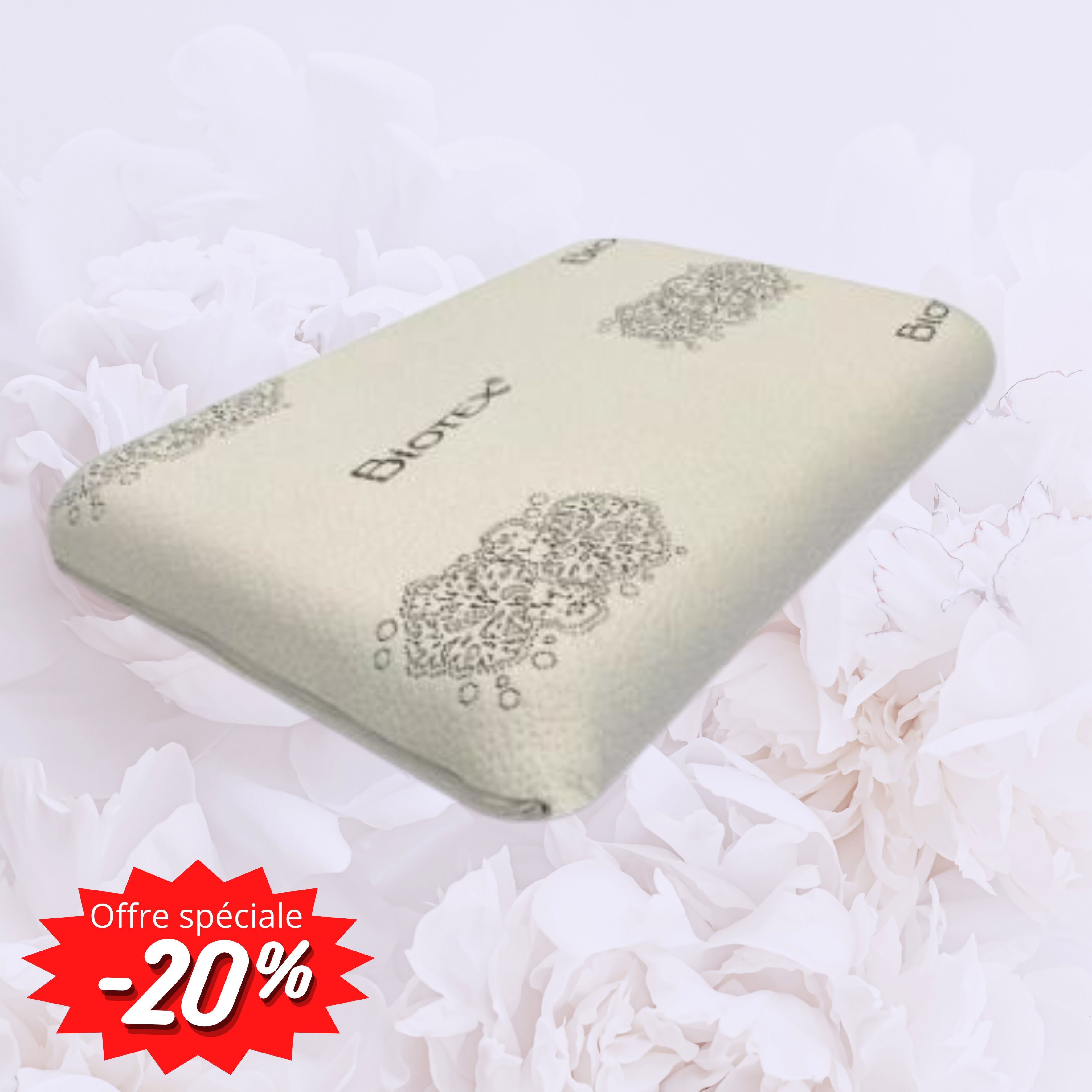 - Compositions : Oreiller en mousse polyuréthane (mousse à mémoire de forme à base d'huile de ricin végétale)