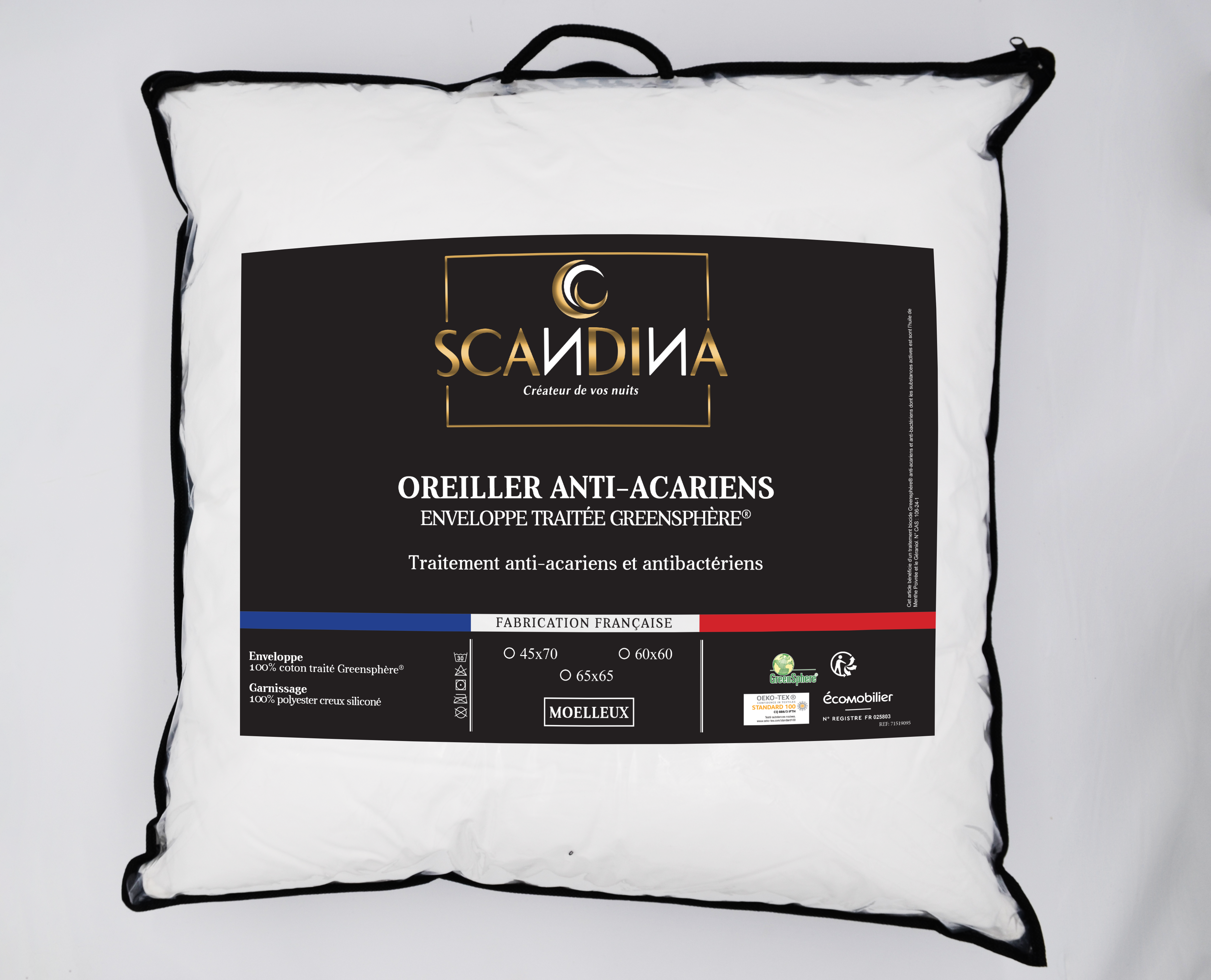 Oreiller Scandina GREENSPHERE anti-acariens et antibacteriens Moelleux 60X60